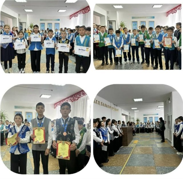 Дүйсенбі күні әдеттегідей  сап түзеу болып ән ұран орындалды және аудандық жарыстардағы жеңімпаздар марапатталды.