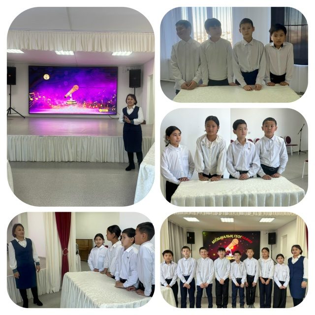 Биология,  география, химия апталығы аясында география пәні мұғалімі Магзум А 5-6 сыныптар арасында «Музыкалық география »  танымдық ойын өткізді