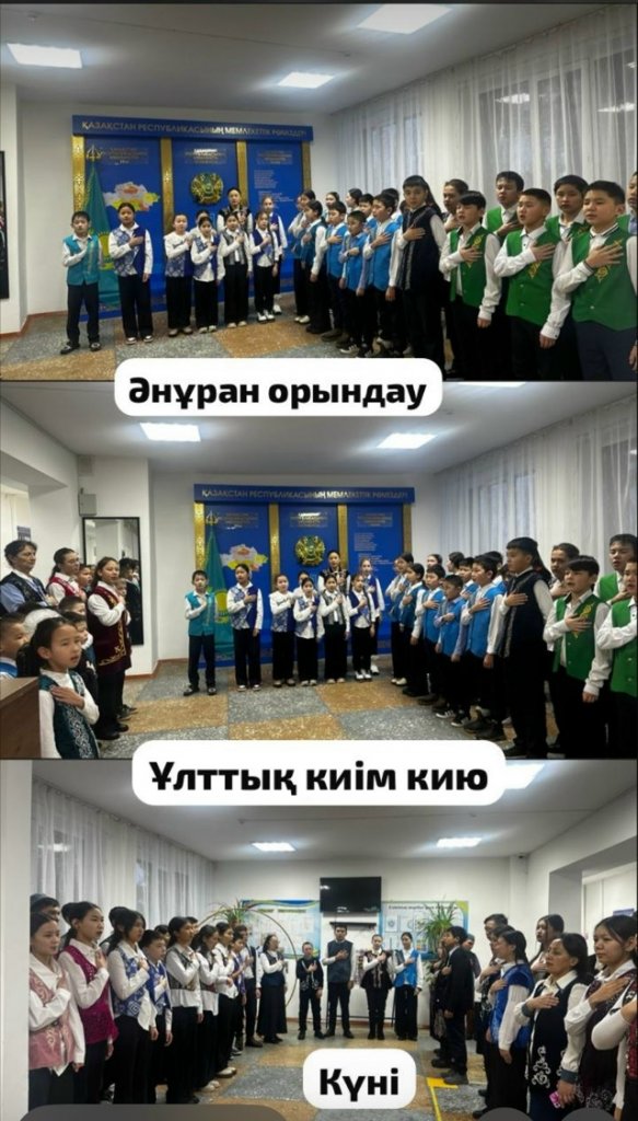 Мектебімізде әр дүйсенбі сайын ұлттық киім киіп әнұран орындалады